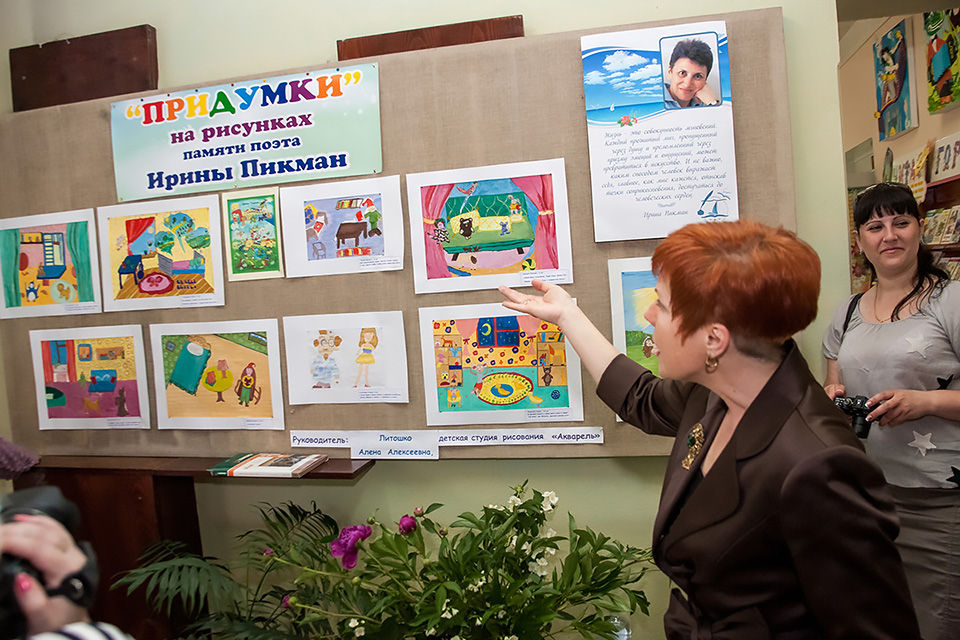 20 мая 2014 в Центральной Детской библиотеке г. Северодонецка, Украина состоялось открытие выставки-конкурса детского рисунка «Придумки на рисунках» посвященного памяти поэта Ирины Пикман. Рисунки иллюстрировали замечательные строки детских стихотворений сборника «Придумки». Выставка получилась красочной, яркой, радующей детей и взрослых своим разнообразием и неповторимостью. На открытии выставки было сказано много добрых и хороших слов о поэте — о её жизни, творческом наследии, мечтах и помыслах. Звучали произведения Ирины Пикман. По итогам конкурса были объявлены победители, но никто из присутствующих не остался без наград. Выставка была открыта для всех желающих с 20 мая по 20 июня 2014 года. За время проведения выставку посетили более 200 человек. Предлагаем вашему вниманию отчет о выставке-конкурсе.